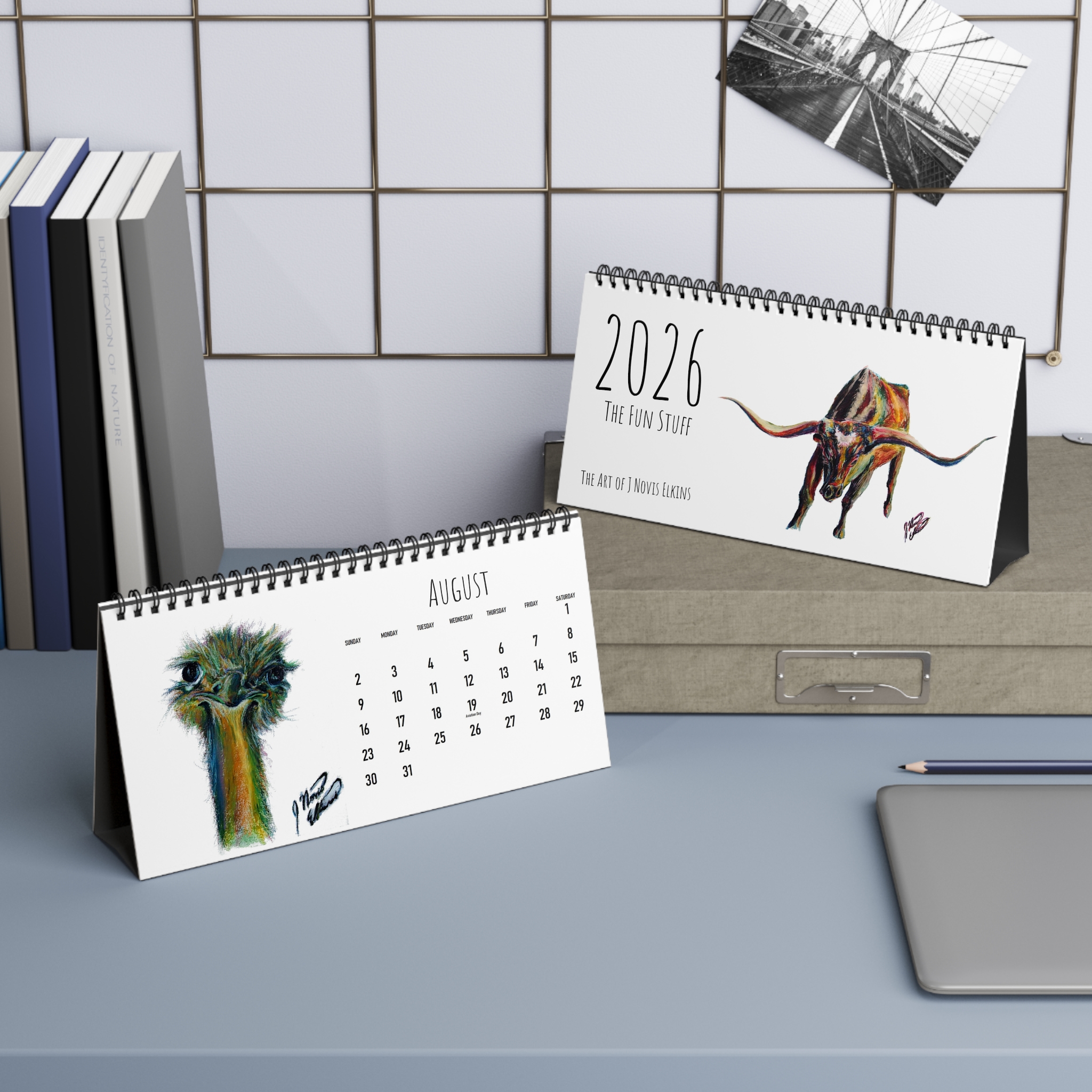 The Fun Stuff. The art of J Novis Elkins Colorful Desktop Calendar 2026