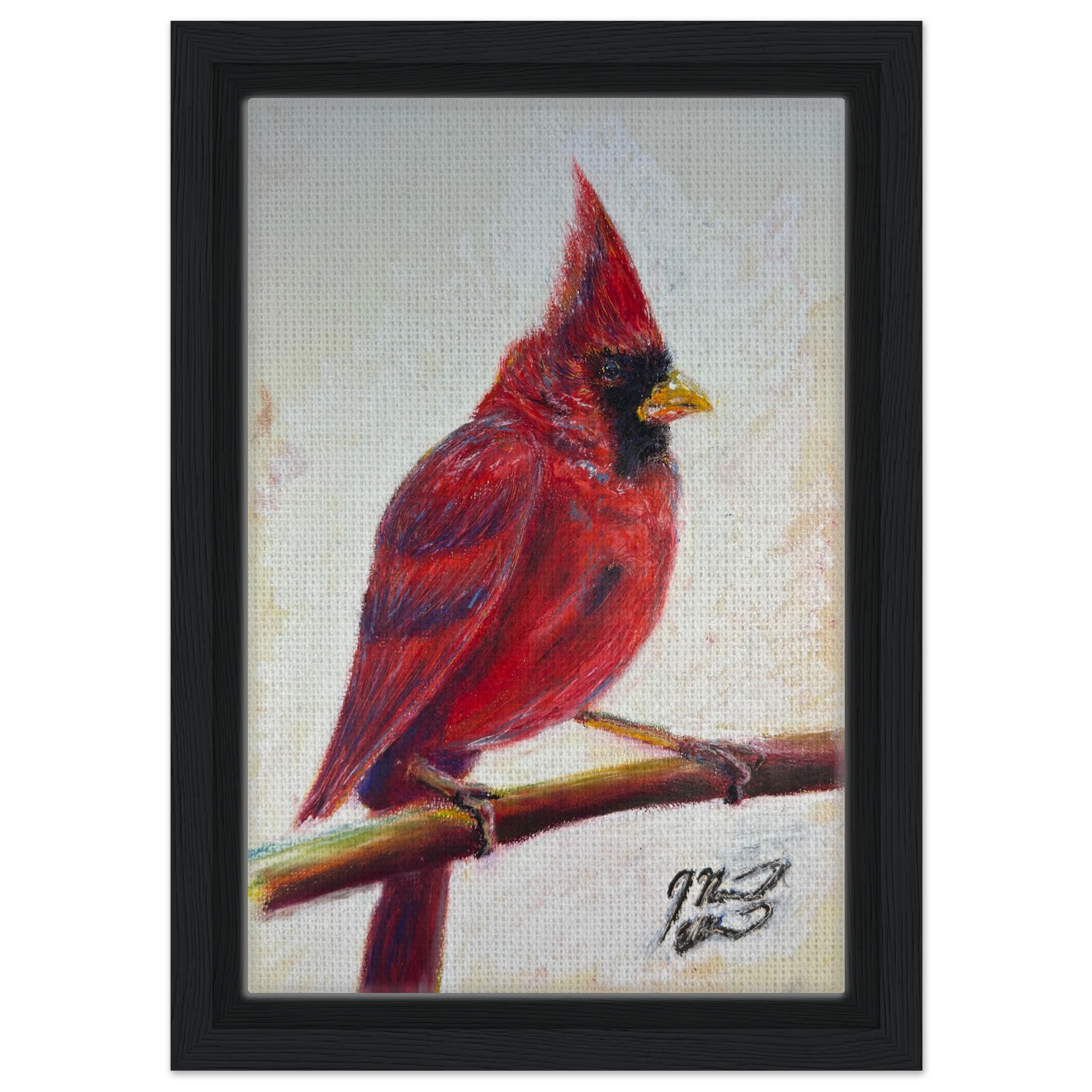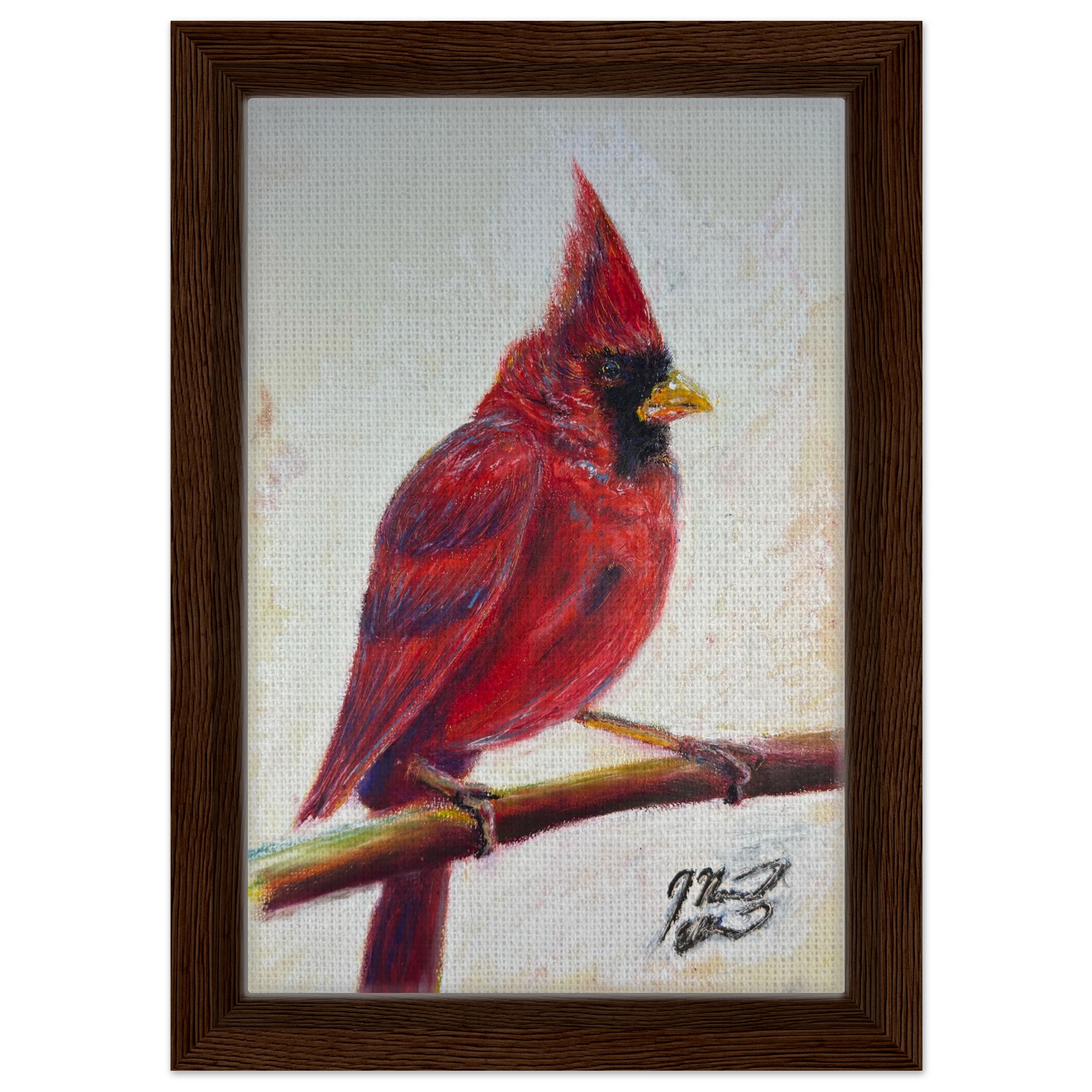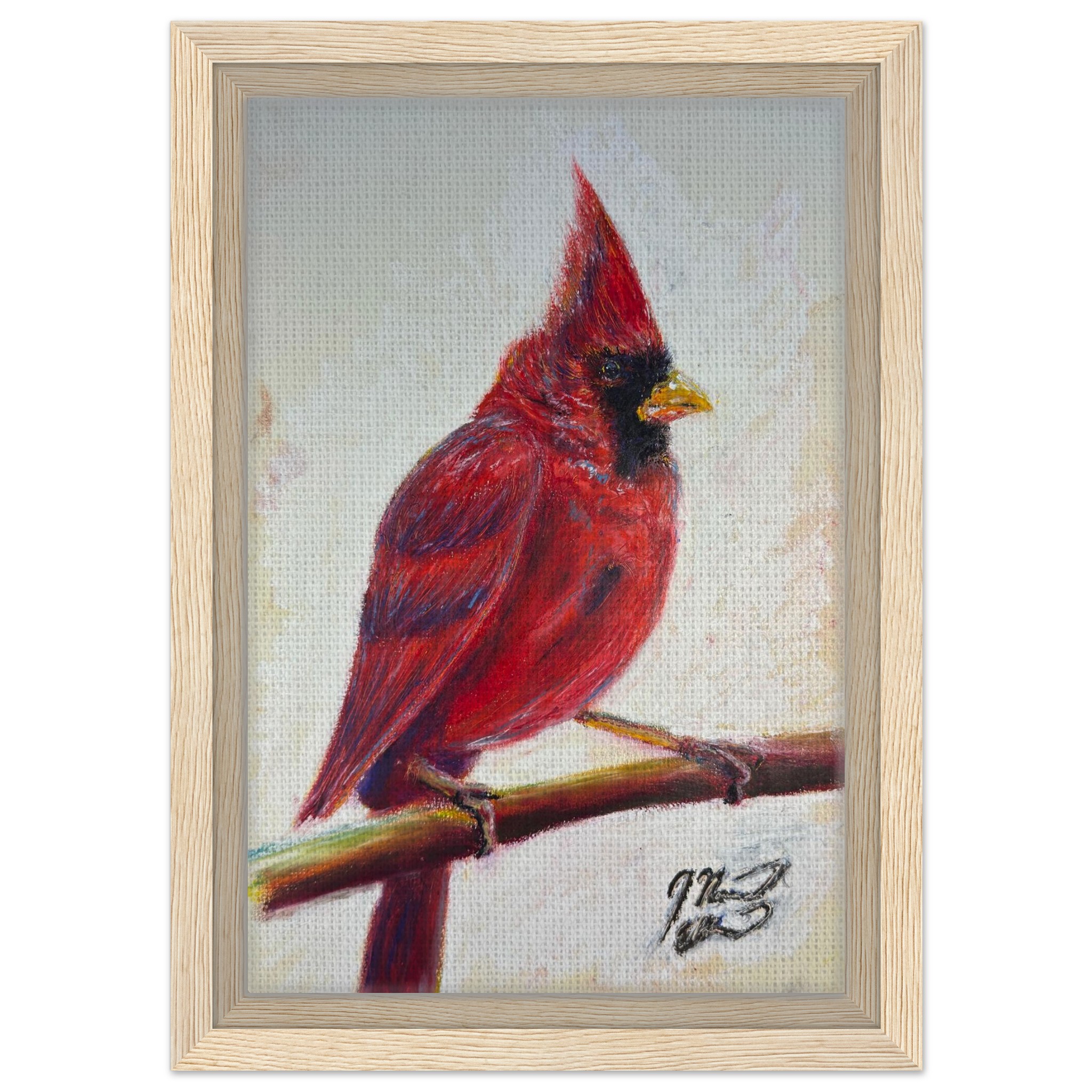 Winter’s Sentry, a Cardinal oil pastel on paper print.