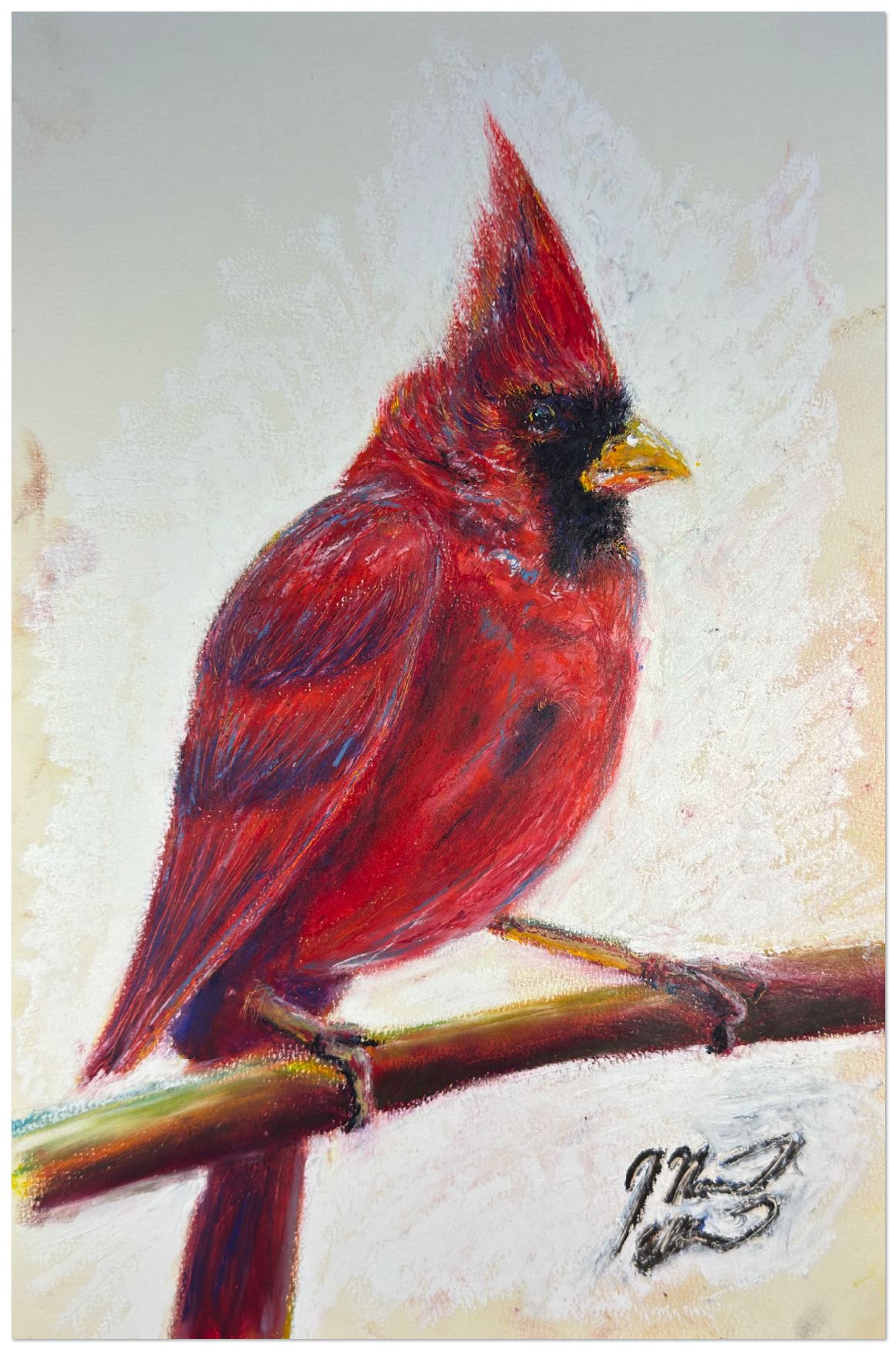 Winter’s Sentry is a lovely print of an original oil pastel on paper cardinal. Available in 8X12 Photographic Print or Giclee Art Print